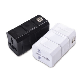 Sleek and clever travel adapter with two built-in USB ports for fast charging. Multi Travel Adapter fits in over 150 countries. It is packed in a clever way in a stylish box, takes up no space at all in your bag. Comes in white or black color.