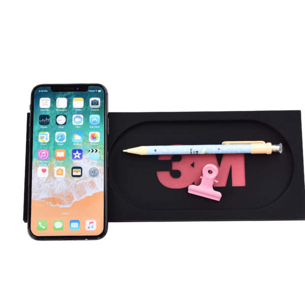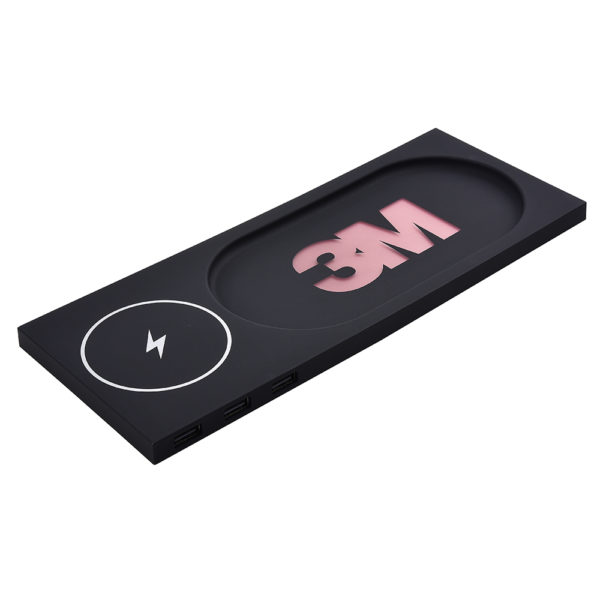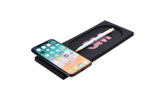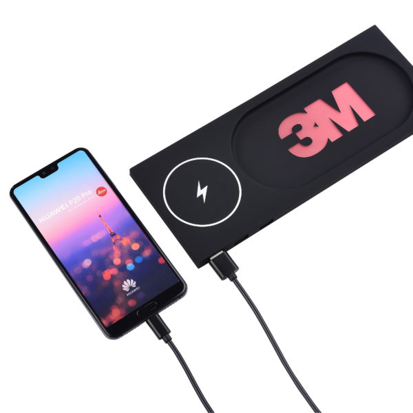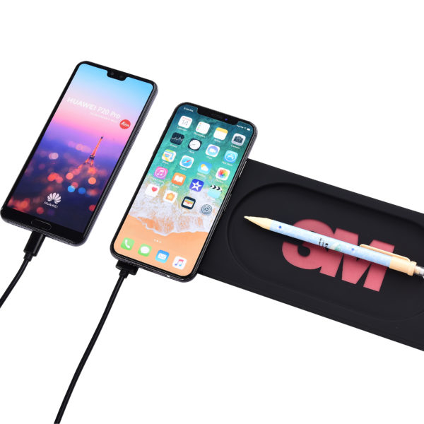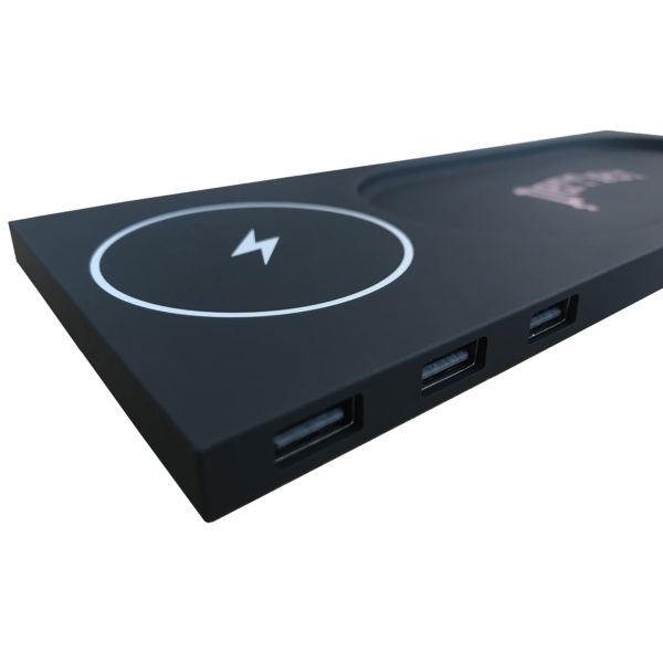 Trådlös QI-laddplatta med LED-upplyst logo. Då den är liten och smidig passar den bra på skrivbordet där den garanterat kommer synas bra!