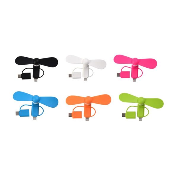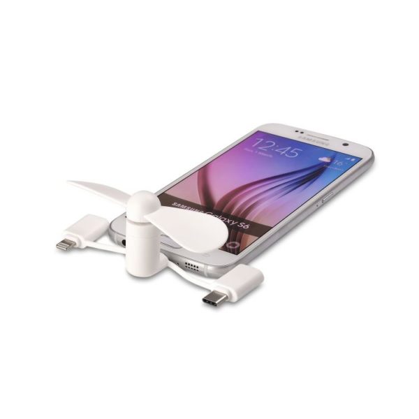 Kul och svalkande fläkt som ansluts via laddningsporten på din telefon. Perfekt giveaway for sommarens heta dagar. Nu i uppdaterad version med inbyggd Apple Lightning, Micro USB och Type C kontakt (Android måste ha OTG funktion). Fläkten startar direkt när den ansluts och drar mycket lite ström. Priset är inkl. 1-färgstryck eller gravyr. Minsta antal med tryck 100st.